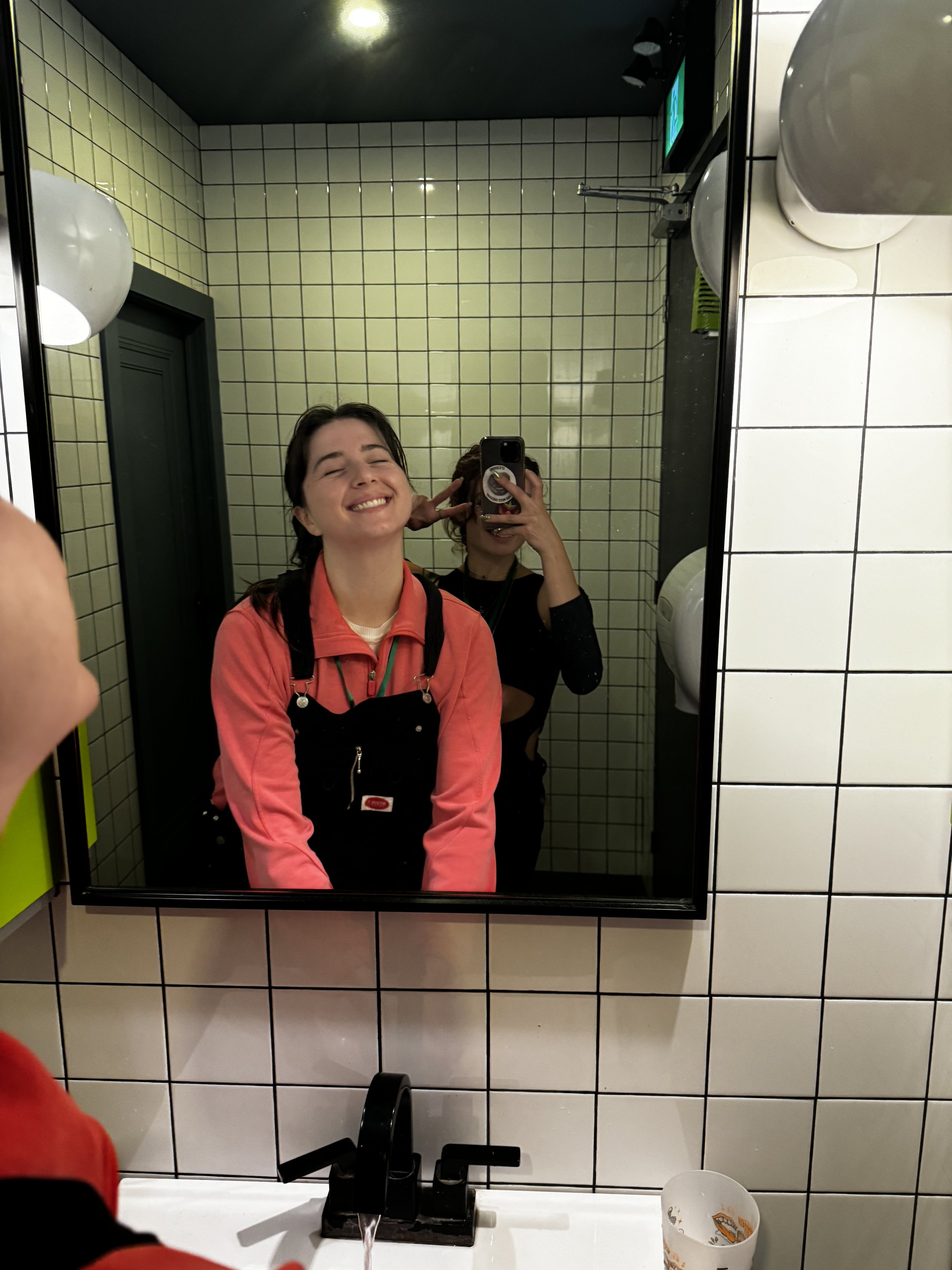 Sierra and I in the bathroom at the Collective Arts Taproom